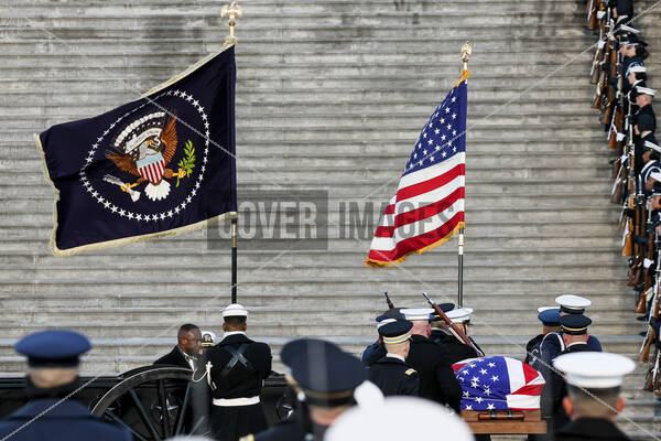 U.S. Military joint force pallbearers carry the flag-draped casket of former President Jimmy Carter into the US Capitol in Washington, D.C. on Tuesday, January 7, 2025. Former President Jimmy Carter, the 39th President of the United States, died at the age of 100 on December 29, 2024 at his home in Plains, Georgia.