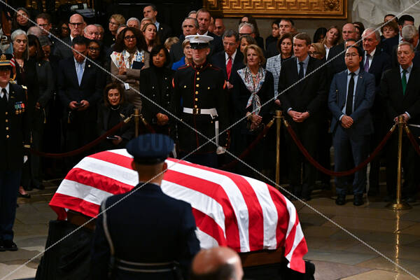 WASHINGTON, DC - JANUARY 7: Members of Congress attend a ceremony in the Rotunda of the US Capitol on January 7, 2025 in Washington, D.C. His body will lie in state in the Capitol Rotunda until his funeral Thursday at Washington National Cathedral.