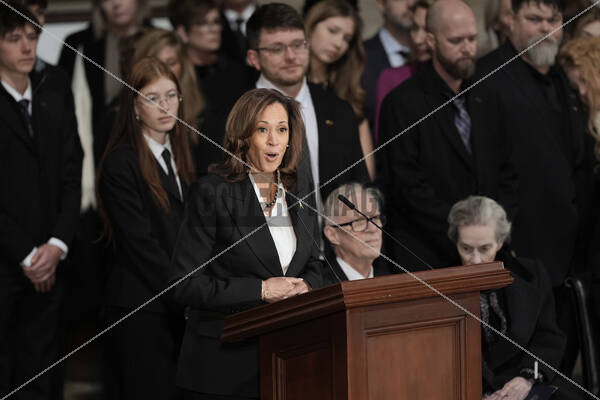 United States Vice President Kamala Harris speaks during a ceremony for former President Jimmy Carter as Carter lies in state at the U.S. Capitol, Tuesday, Jan. 7, 2025, in Washington. Carter died Dec. 29, at the age of 100.