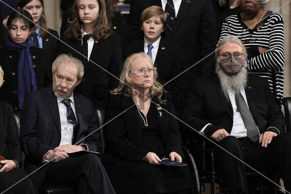 Amy Carter, bottom center, joined by members of the Carter family, attends a ceremony where the flag-draped casket of her father, former President Jimmy Carter, lies in state in the Capitol, Tuesday, Jan. 7, 2025, in Washington. Carter died Dec. 29 at the age of 100.