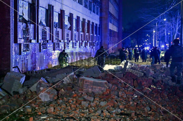Aftermath of an air strike by Russian troops on the industrial infrastructure of Zaporizhzhia