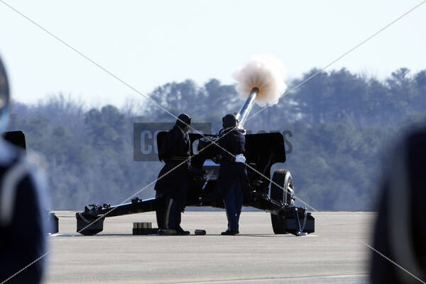 A 21-gun salute is rendered before fhe flag-draped casket of former President Jimmy Carter is carried by a joint services body bearer team to Special Air Mission 39, at Joint Base Andrews