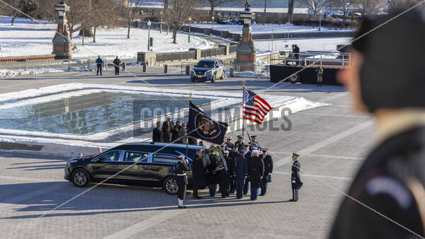 The flag draped casket of former US President Jimmy Carter is carried by a joint services body bearer team out of the of the US Capitol in Washington, DC, USA, 09 January 2025. Following a state funeral at the National Cathedral former President Carter’s remains will return to Plains, Georgia