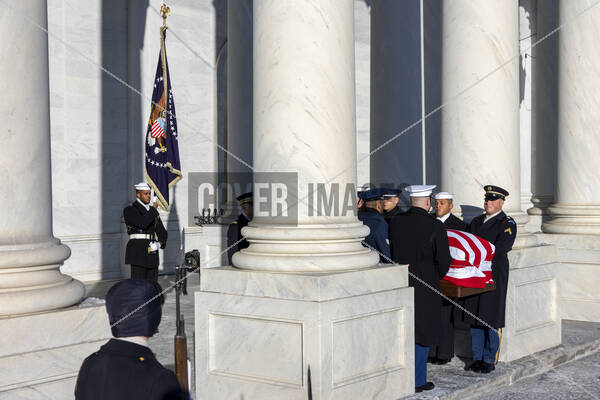 The flag draped casket of former US President Jimmy Carter is carried by a joint services body bearer team out of the of the US Capitol in Washington, DC, USA, 09 January 2025. Following a state funeral at the National Cathedral former President Carter’s remains will return to Plains, Georgia