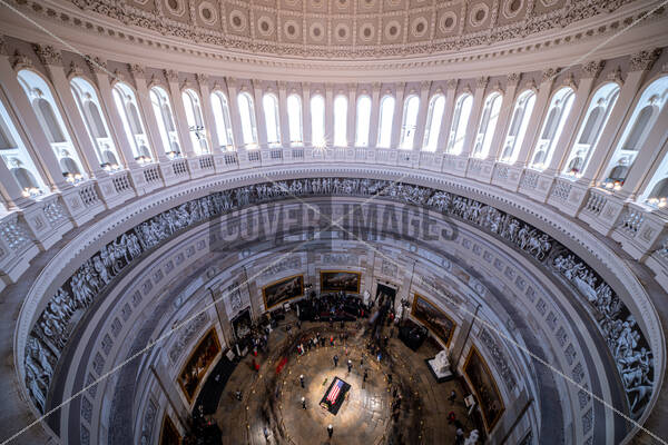 The flag-draped casket of former U.S. President Jimmy Carter lies in state in the U.S. Capitol Rotunda on January 8, 2025 in Washington, DC. Carter's body will lie in state in the Capitol Rotunda until a funeral service at the National Cathedral in Washington on January 9. Carter, the 39th President of the United States, died at the age of 100 on December 29, 2024 at his home in Plains, Georgia