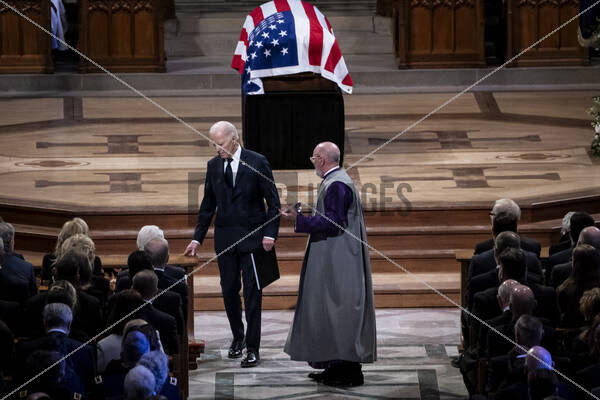 President Joe Biden returns to his seat after delivering remarks at former President Jimmy Carter’s funeral at National Cathedral in Washington, D.C. on Thursday, January 9, 2025