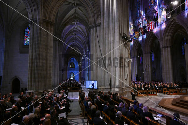 WASHINGTON, DC - JANUARY 9: Attendees listen as President Joe Biden delivers a eulogy during state funeral services for former President Jimmy Carter at the National Cathedral on January 9, 2025 in Washington, D.C