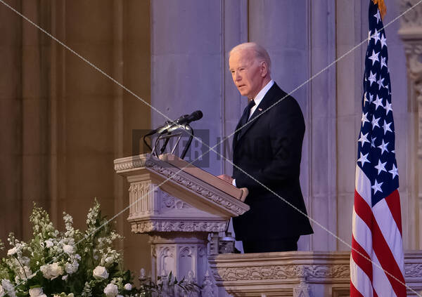 United States President Joe Biden eulogizes former President Jimmy Carter during his state funeral at Washington National Cathedral in Washington, DC on January 9, 2024