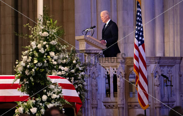 United States President Joe Biden eulogizes former President Jimmy Carter during his state funeral at Washington National Cathedral in Washington, DC on January 9, 2024