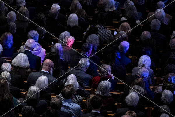 Attendees are lit by sunlight through stained glasses as President Joe Biden delivers remarks at former President Jimmy Carter’s funeral at National Cathedral in Washington, D.C. on Thursday, January 9, 2025
