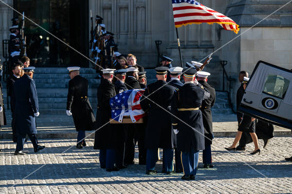 The casket of of former United States President Jimmy Carter arrives for his State Funeral Service at the Washington National Cathedral in Washington, DC on Thursday, January 9, 2025. The late President will be laid to rest later today in his hometown of Plains, Georgia