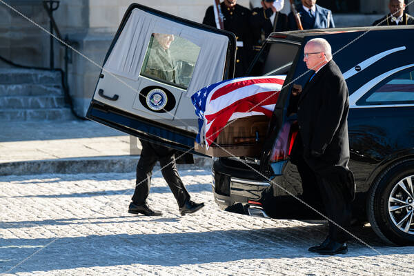 The casket of of former United States President Jimmy Carter arrives for his State Funeral Service at the Washington National Cathedral in Washington, DC on Thursday, January 9, 2025. The late President will be laid to rest later today in his hometown of Plains, Georgia
