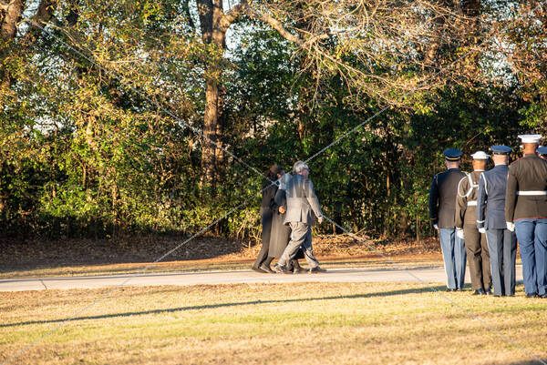 Guests arrive for a private funeral and ceremonial military service honoring former United States President Jimmy Carter at the Maranatha Baptist Church in his hometown
