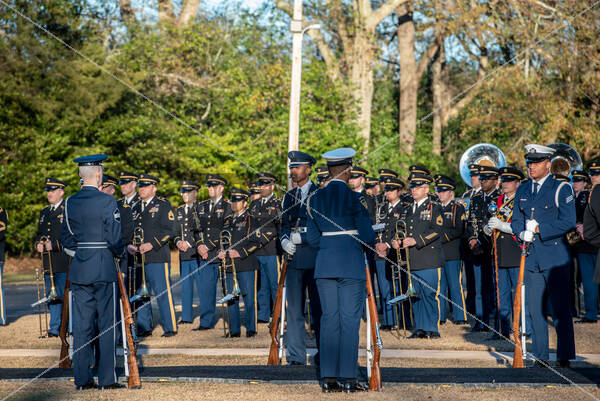 United States service members with the 282nd Army Band march in formation for a private funeral service honoring former US President Jimmy Carter at the Maranatha Baptist Church in his hometown