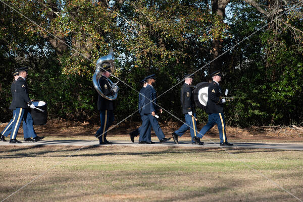 United States service members with the 282nd Army Band arrive for a private funeral service honoring former US President Jimmy Carter at the Maranatha Baptist Church in his hometown