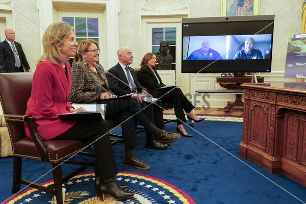 PersonInImage: United States Homeland Security Advisor Elizabeth Sherwood-Randall, FEMA administrator Deanne Criswell, Secretary of Homeland Security, Alejandro Mayorkas and United States Vice President Kamala Harris participate in a meeting with Regional Administrator Robert Fenton, Region 9, Federal Emergency Management Agency, Chief Randy Moore, U.S. Forest Service