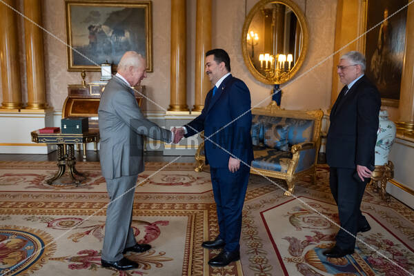 PersonInImage: King Charles III (left) holds an audience with the Prime Minister of Iraq Mohammed Shia' Al Sudani and the Ambassador of Iraq to the United Kingdom, Mohammed Jaafar Al-Sadr (right)