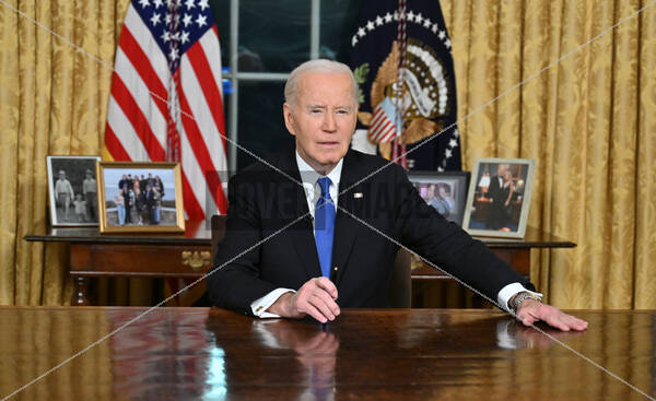 United States President Joe Biden delivers his farewell address to the nation from the Oval Office of the White House in Washington, DC