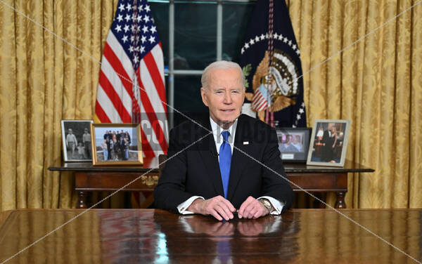 United States President Joe Biden delivers his farewell address to the nation from the Oval Office of the White House