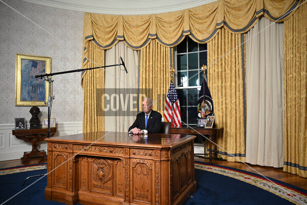 United States President Joe Biden delivers his farewell address to the nation from the Oval Office of the White House in Washington, DC