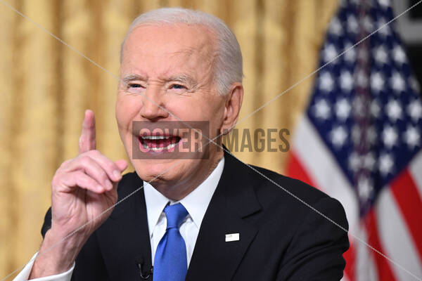 United States President Joe Biden delivers his farewell address to the nation from the Oval Office of the White House