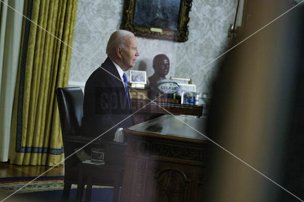 United States President Joe Biden delivers his farewell address to the nation from the Oval Office of the White House in Washington DC