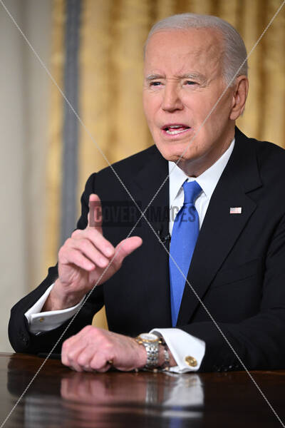 United States President Joe Biden delivers his farewell address to the nation from the Oval Office of the White House