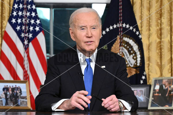 United States President Joe Biden delivers his farewell address to the nation from the Oval Office of the White House