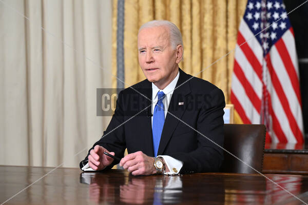 United States President Joe Biden delivers his farewell address to the nation from the Oval Office of the White House