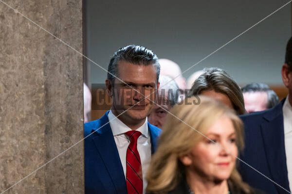President-elect Donald Trump's nominee for Secretary of Defense United States Secretary of Defense-designate Pete Hegseth enters his Senate Armed Services confirmation hearing in the Dirksen Senate office building in Washington, D.C.