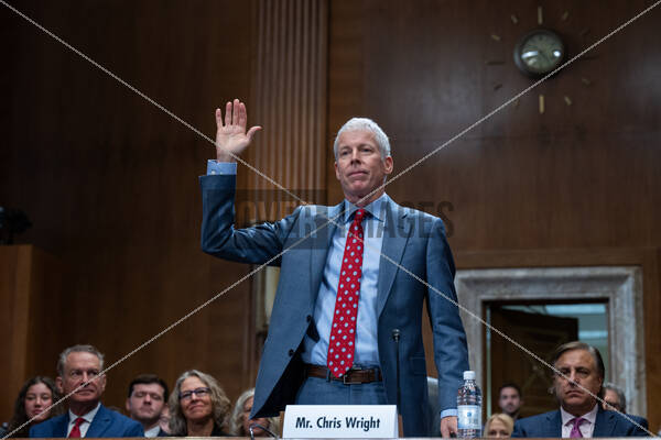 President-elect Donald Trump's nominee for Secretary of Energy-Designate Chris Wright is sworn-in as he testifies at his Senate Energy and Natural Resources confirmation hearing in the Dirksen Senate office building in Washington, D.C.