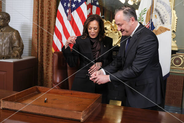 Headline: President Kamala Harris Signs Her Ceremonial Desk Drawer