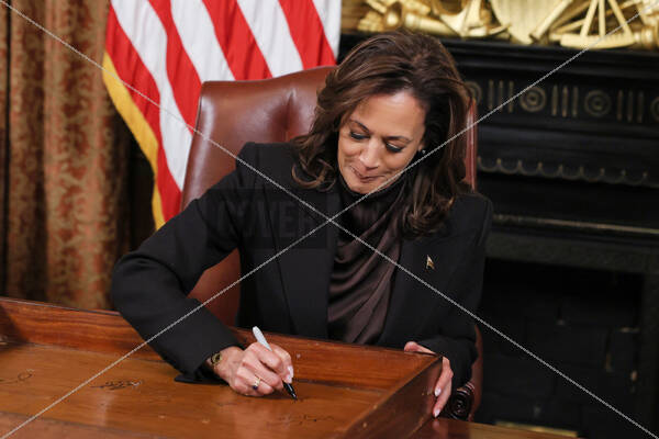 Headline: President Kamala Harris Signs Her Ceremonial Desk Drawer