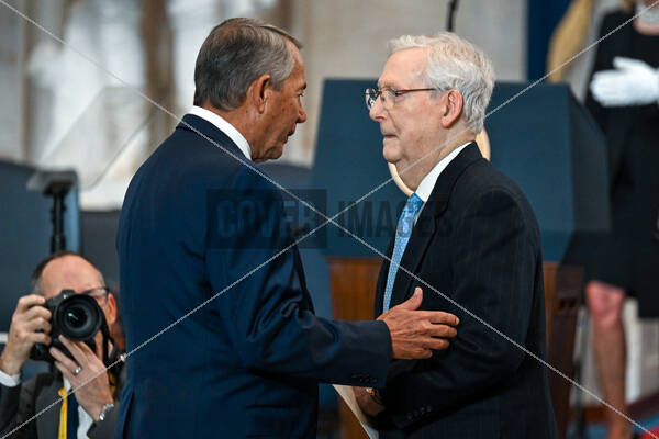 Former Speaker John Boehner, left, greets Senator Mitch McConnell before the inauguration of Donald Trump as the 47th president of the United States takes place inside the Capitol Rotunda of the U.S. Capitol building in Washington, D.C., Monday, January 20, 2025. It is the 60th U.S. presidential inauguration and the second non-consecutive inauguration of Trump as U.S. president