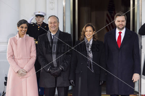 Vice president-elect JD Vance (R) and Vice president Kamala Harris (C-R), along with First Gentleman Doug Emhoff (C-L) and Usha Vance (L) pose on the North Portico of the White House on the morning of president-elect Donald Trump’s inauguration in Washington, DC, USA, 20 January 2025. Trump, who defeated Kamala Harris to become the 47th president of the United States, is being sworn in today, though the planned outdoor ceremonies and events have been cancelled due to extreme cold temperatures.