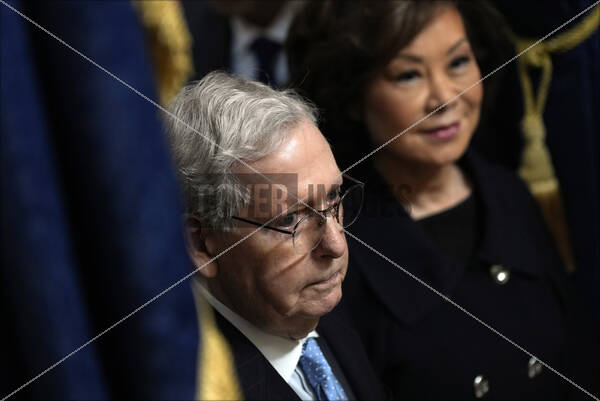 Sen. Mitch McConnell, R-Ky., and Elaine Chao arrive before the 60th Presidential Inauguration in the Rotunda of the U.S. Capitol in Washington