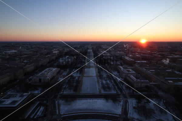 A view of the U.S. Capitol from the top of the Washington Monument at sunrise on the Inauguration Day of Donald Trump's second presidential term in Washington, DC, U.S