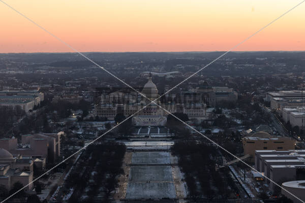 A view of the U.S. Capitol from the top of the Washington Monument at dawn on the Inauguration Day of Donald Trump's second presidential term in Washington, DC, U.S