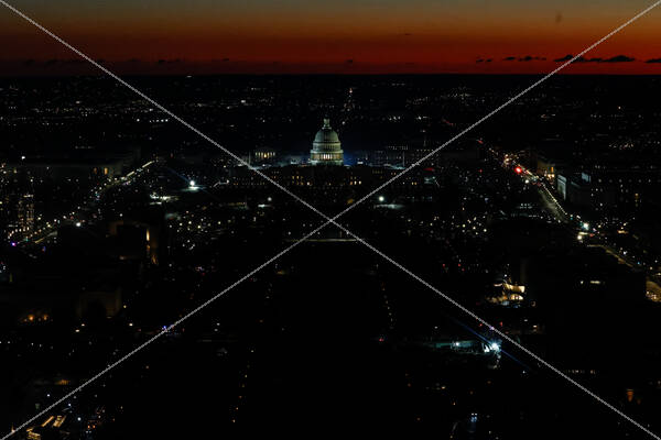 A view of the U.S. Capitol from the top of the Washington Monument at dawn on the Inauguration Day of Donald Trump's second presidential term in Washington, DC, U.S
