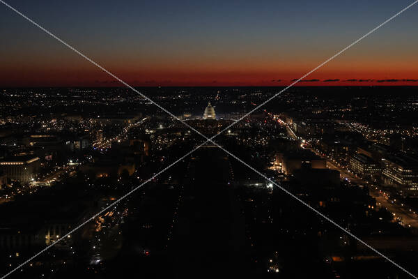 A view of the U.S. Capitol from the top of the Washington Monument at dawn on the Inauguration Day of Donald Trump's second presidential term in Washington, DC, U.S