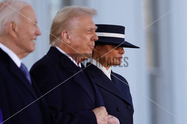President Joe Biden (L) greets President Elect Donald Trump (2R) and Melania Trump (R) at the White House during inauguration ceremonies for US President Donald Trump in Washington, DC, USA, 20 January 2025. Trump, who defeated Vice President Kamala Harris in the 2024 general election, is being sworn in today as the 47th president of the United States, though the planned outdoor ceremonies and events have been cancelled due to a forecast of extreme cold temperatures