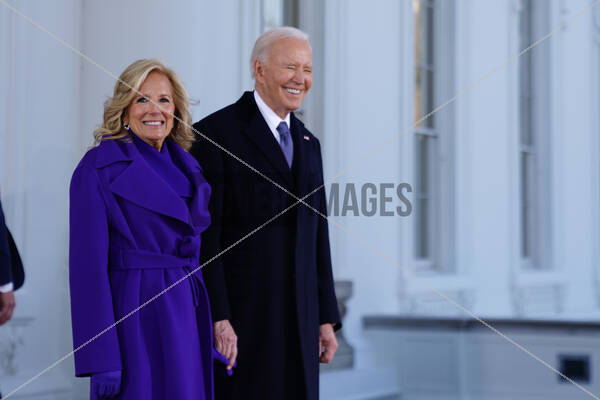 President Joe Biden (R) and First Lady Dr. Jill Biden prepare to greet President Elect Donald Trump at the White House during inauguration ceremonies for US President Donald Trump in Washington, DC, USA, 20 January 2025. Trump, who defeated Vice President Kamala Harris in the 2024 general election, is being sworn in today as the 47th president of the United States, though the planned outdoor ceremonies and events have been cancelled due to a forecast of extreme cold temperatures