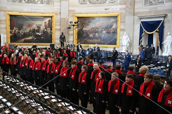 A choir rehearses ahead of the inauguration ceremony before Donald Trump is sworn in as the 47th US President in the US Capitol Rotunda in Washington, DC, on January 20, 2025.