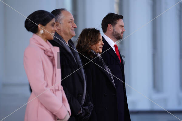 Vice President Kamala Harris (2R) and Second Gentleman Doug Emhoff (2L) stand with Vice President Elect JD Vance (R) and Usha Vance (L) at the White House during inauguration ceremonies for US President Donald Trump in Washington, DC, USA, 20 January 2025. Trump, who defeated Vice President Kamala Harris in the 2024 general election, is being sworn in today as the 47th president of the United States, though the planned outdoor ceremonies and events have been cancelled due to a forecast of extreme cold temperatures