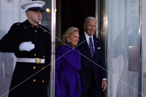 President Joe Biden (R) and First Lady Dr. Jill Biden prepare to greet President Elect Donald Trump at the White House during inauguration ceremonies for US President Donald Trump in Washington, DC, USA, 20 January 2025. Trump, who defeated Vice President Kamala Harris in the 2024 general election, is being sworn in today as the 47th president of the United States, though the planned outdoor ceremonies and events have been cancelled due to a forecast of extreme cold temperatures