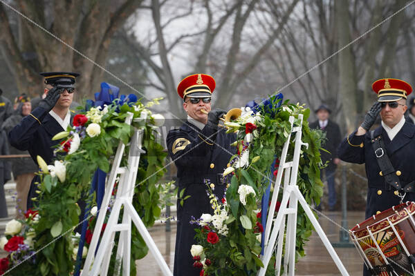 Members of the U.S. Army Band provide support during President-Elect of the United States Donald Trump's visit to Arlington National Cemetery January 19, 2025. The visit to Arlington National Cemetery is in lead up to Monday’s Inauguration.