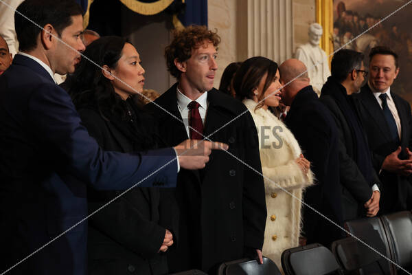 (L-R) Sen. Marco Rubio (R-FL), president-elect Donald Trump's nominee for Secretary of State, Priscilla Chan and Meta and Facebook CEO Mark Zuckerberg attend the inauguration of U.S. president-elect Donald Trump in the Rotunda of the U.S. Capitol on January 20, 2025 in Washington, DC. Donald Trump takes office for his second term as the 47th president of the United States