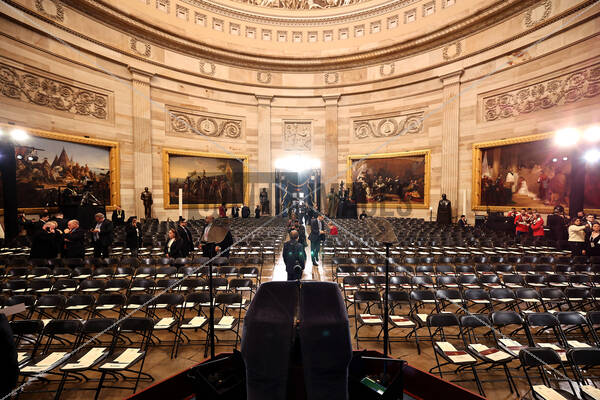 Staff prepare for the inauguration of U.S. President-elect Donald Trump in the U.S. Capitol Rotunda on January 20, 2025 in Washington, DC. Donald Trump takes office for his second term as the 47th president of the United States