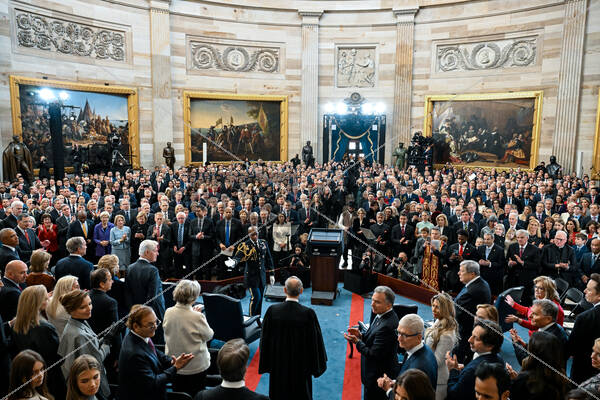 Chief Justice John G. Roberts entering the stage as the inauguration of Donald Trump as the 47th president of the United States takes place inside the Capitol Rotunda of the U.S. Capitol building in Washington, D.C., Monday, January 20, 2025. It is the 60th U.S. presidential inauguration and the second non-consecutive inauguration of Trump as U.S. president