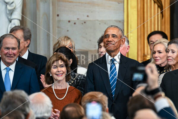 Former president George W. Bush, Former First Lady Laura Bush and Former president Barack Obama arrive for the inauguration of Donald Trump as the 47th president of the United States takes place inside the Capitol Rotunda of the U.S. Capitol building in Washington, D.C., Monday, January 20, 2025. It is the 60th U.S. presidential inauguration and the second non-consecutive inauguration of Trump as U.S. president